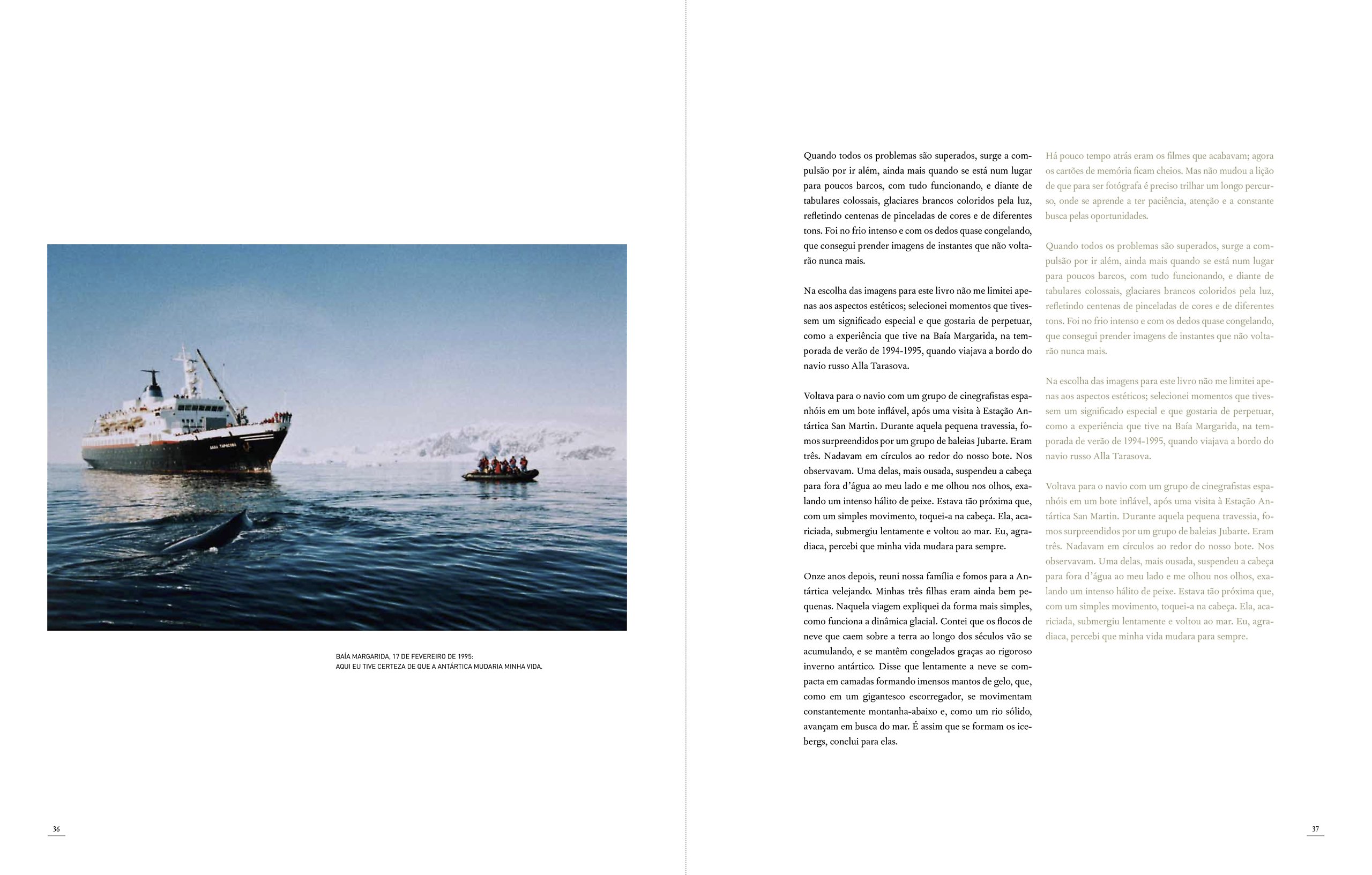 Este livro traz fotografias de paisagens geladas captadas em diferentes viagens e que retratam a beleza e a magia do mundo na sua essência. Um continente silencioso de vozes humanas, que surpreende pelas constantes transformações de paisagens e pela sua singular biodiversidade.